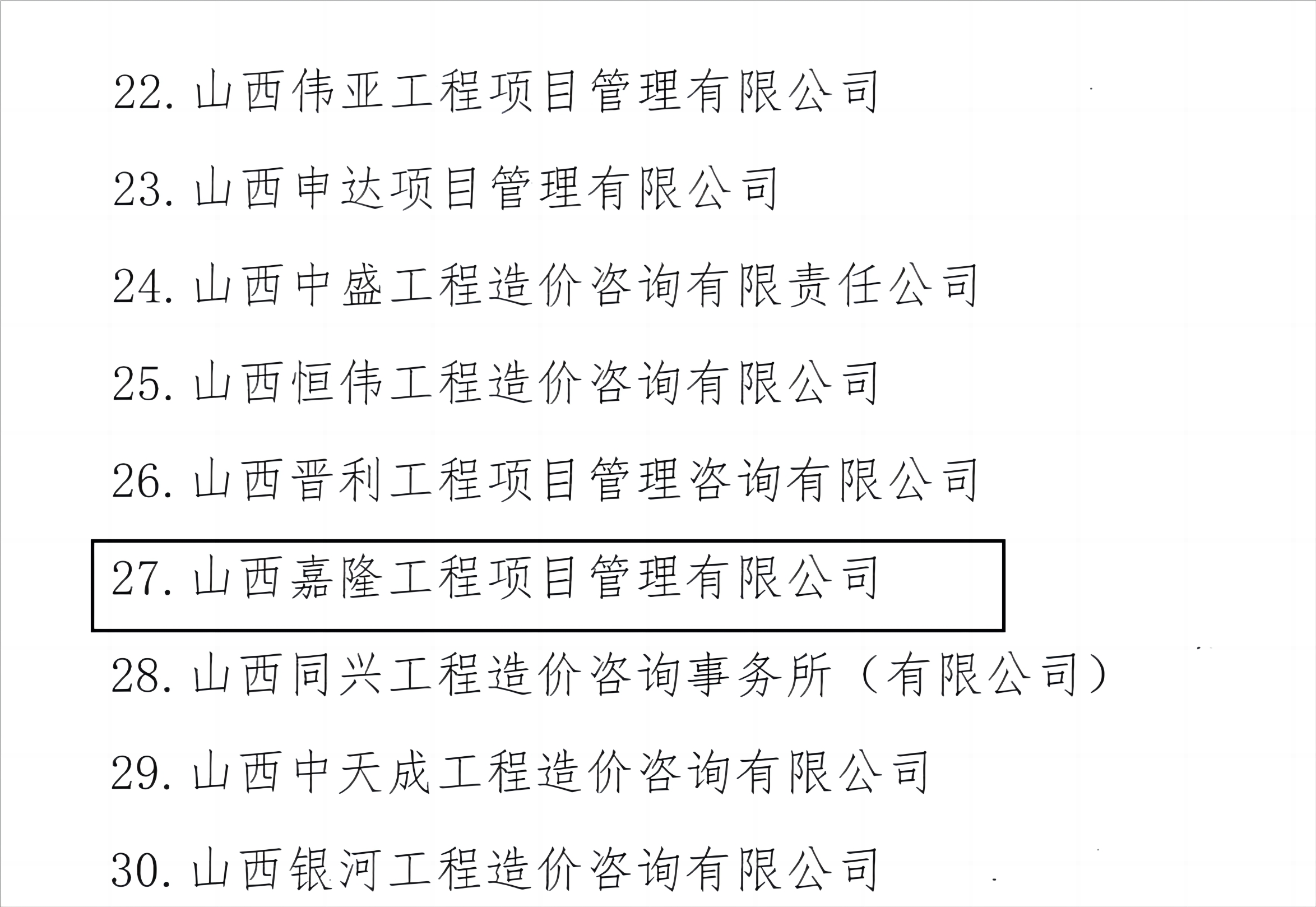 祝賀山西嘉隆工程項(xiàng)目管理有限公司入選2023年度山西造價(jià)咨詢(xún)業(yè)務(wù)骨干企業(yè)